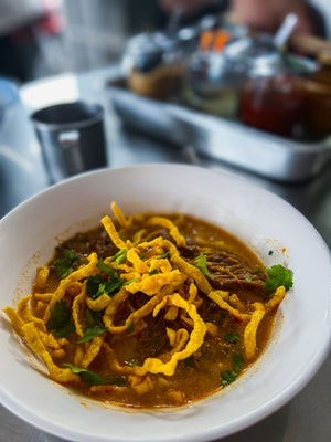 Inspiré de la traditionnelle soupe au curry Khao Soi, ce mélange d'épices et d'herbes aromatiques savamment sélectionnées offre une expérience gustative thaïlandaise riche, complexe et authentique. Idéal pour revisiter les classiques de la cuisine thaïlandaise ou apporter une touche d'exotisme à vos repas quotidiens, ce mélange vous ouvre les portes des saveurs audacieuses de Chiang Mai.