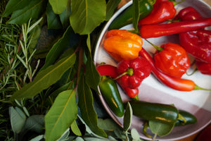 Flocons de piment habanero, fleur de sel, feuilles de combava déshydratées, zeste de citron vert.