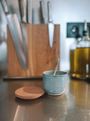 Porte-épices et sel en céramique artisanale avec couvercle en liège
