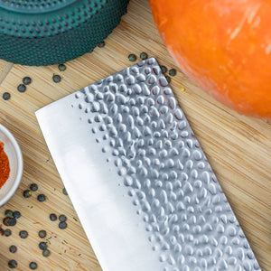 - Tsuchime (槌目) Motif martelé : Réduit la friction et empêche les aliments de coller à la lame.