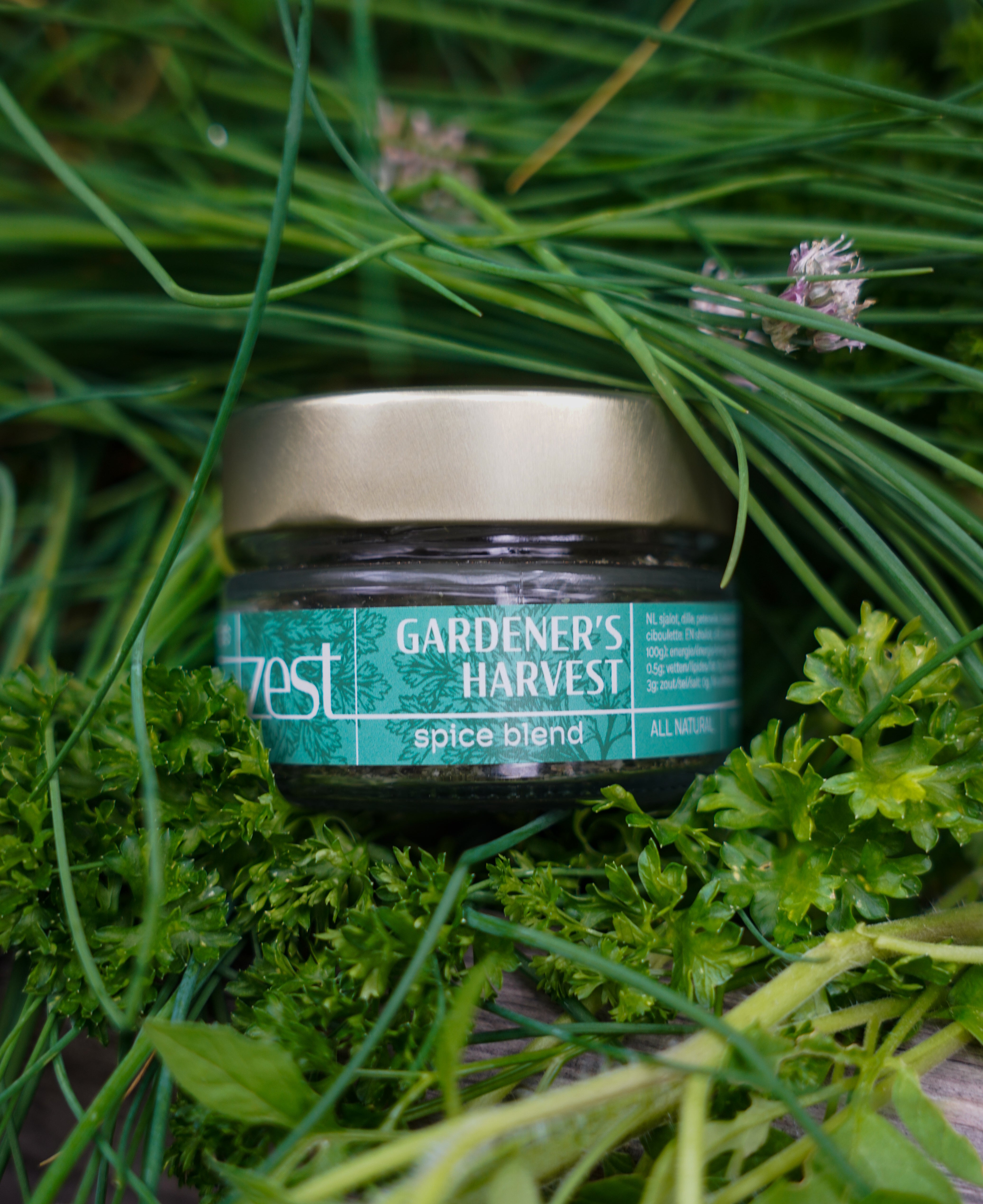 - Mix van verse tuinkruiden: Een smaakvolle mix van dille, peterselie, bieslook en sjalotten.